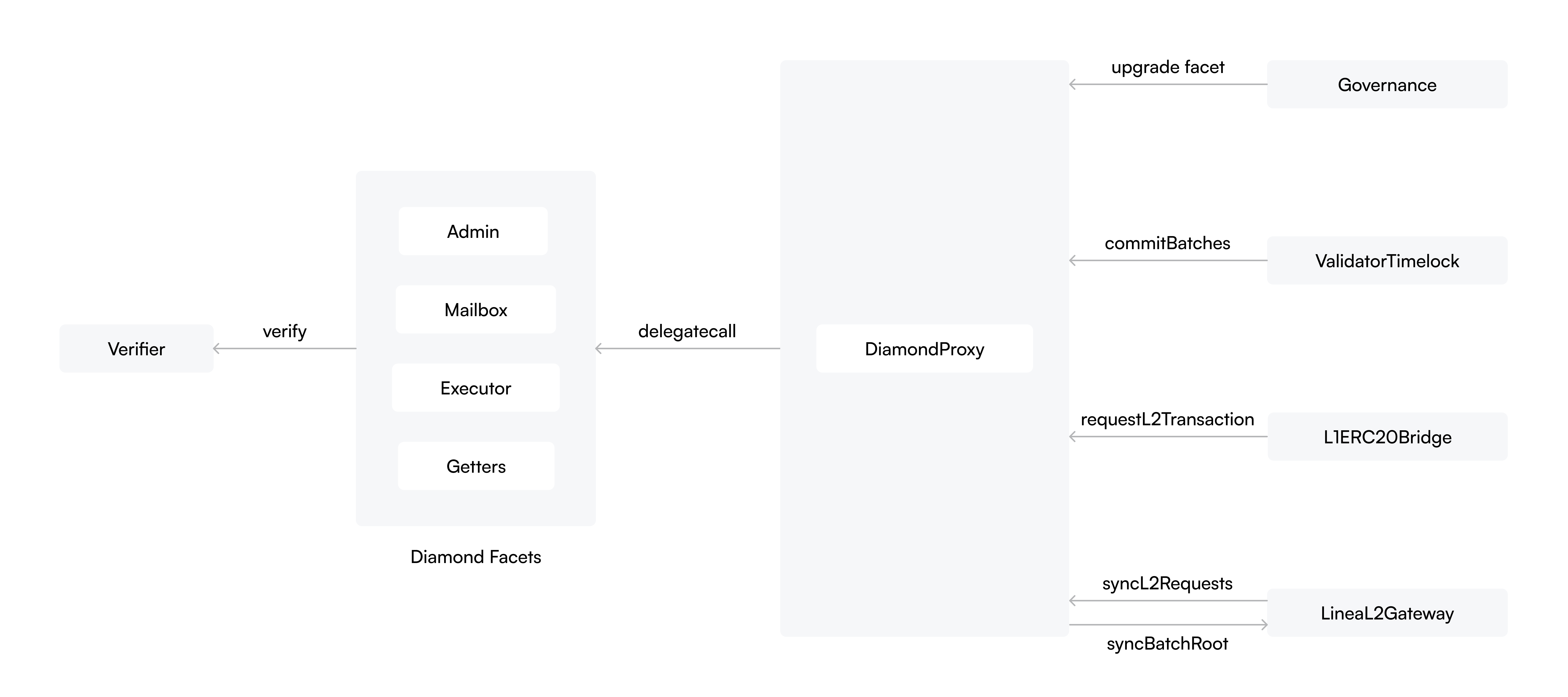 **Governance contract** is the owner of the **diamond proxy contract**, which is able to upgrade facets in the proxy contract.